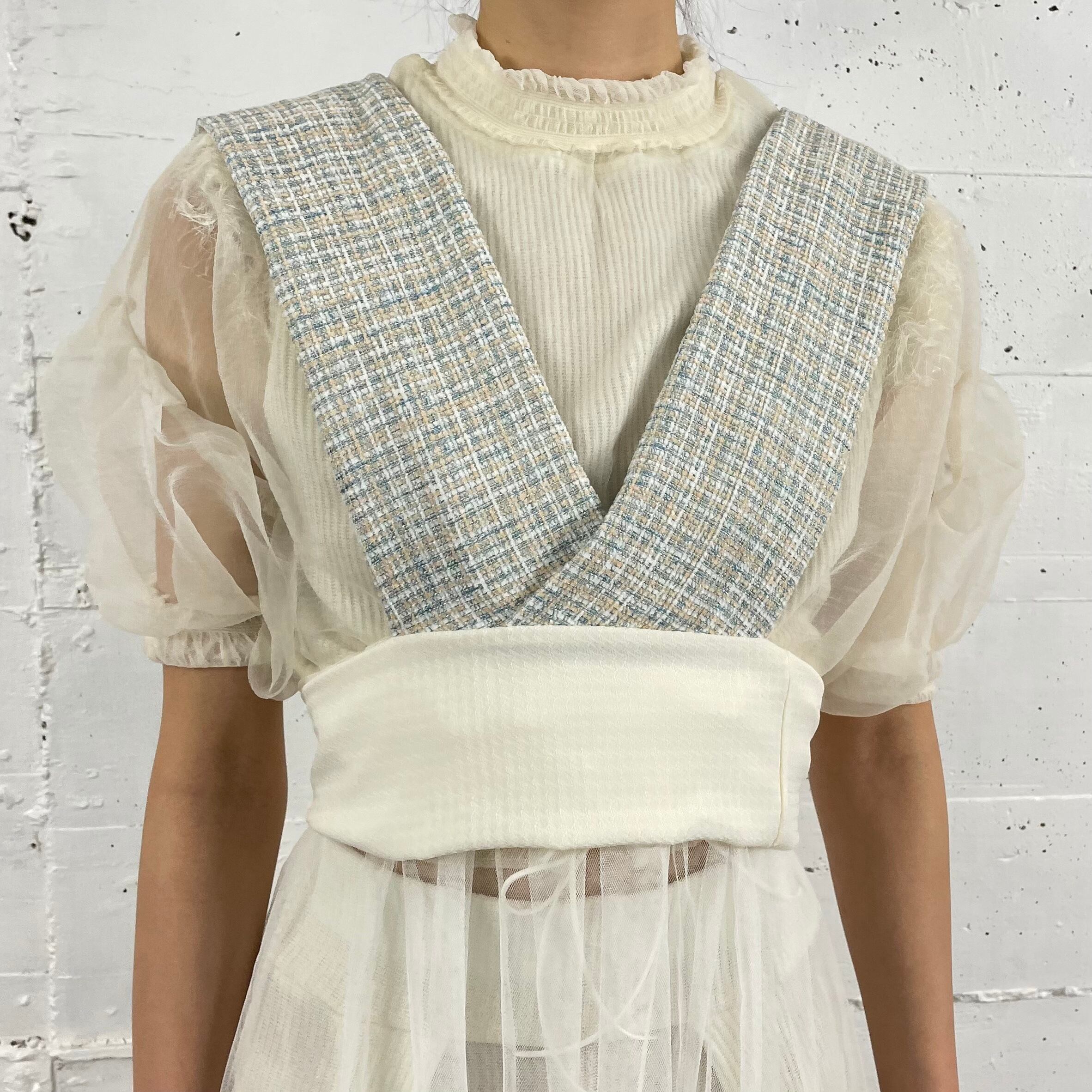Multi ribbons bustier with see through skirt ss22